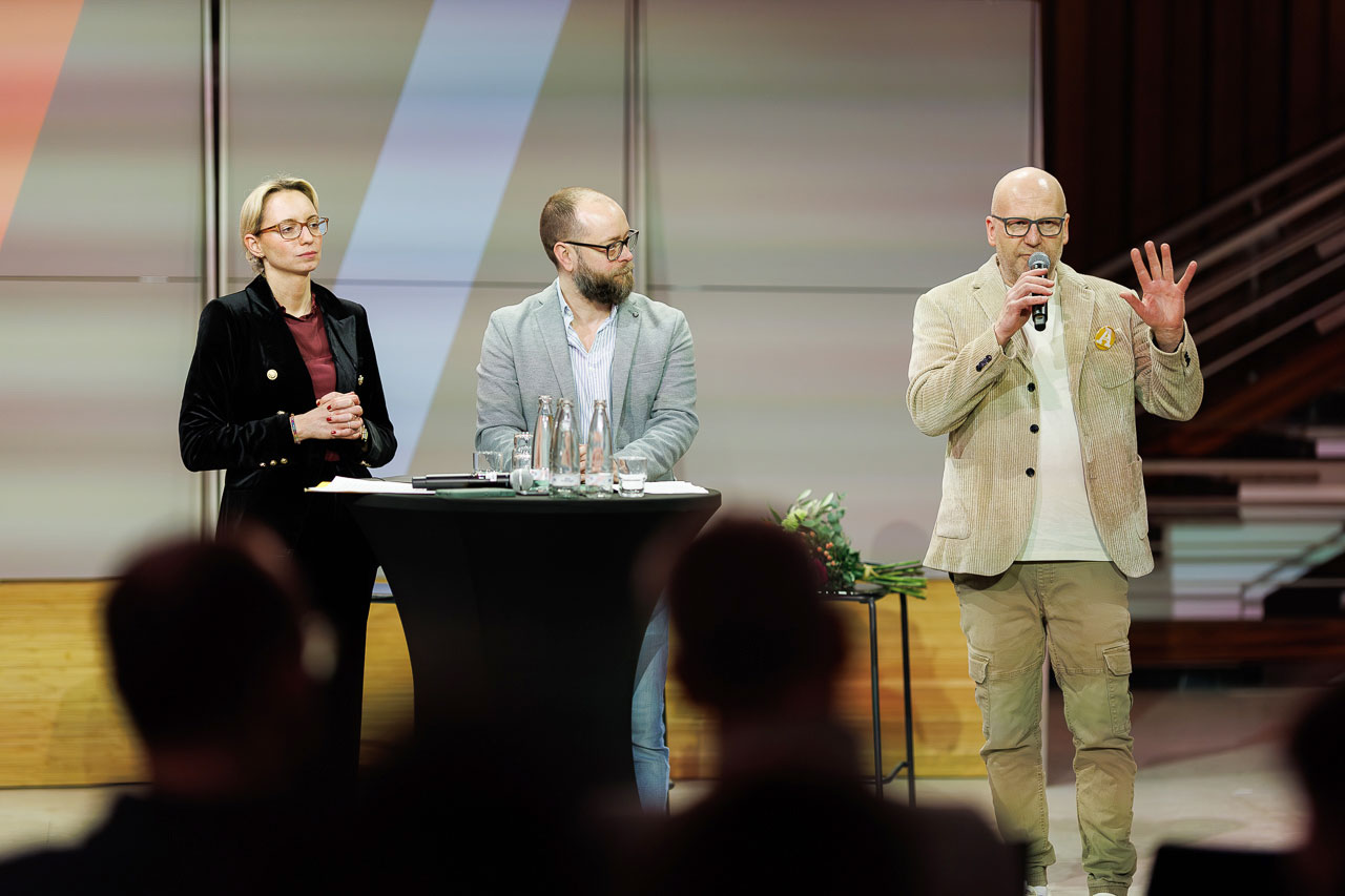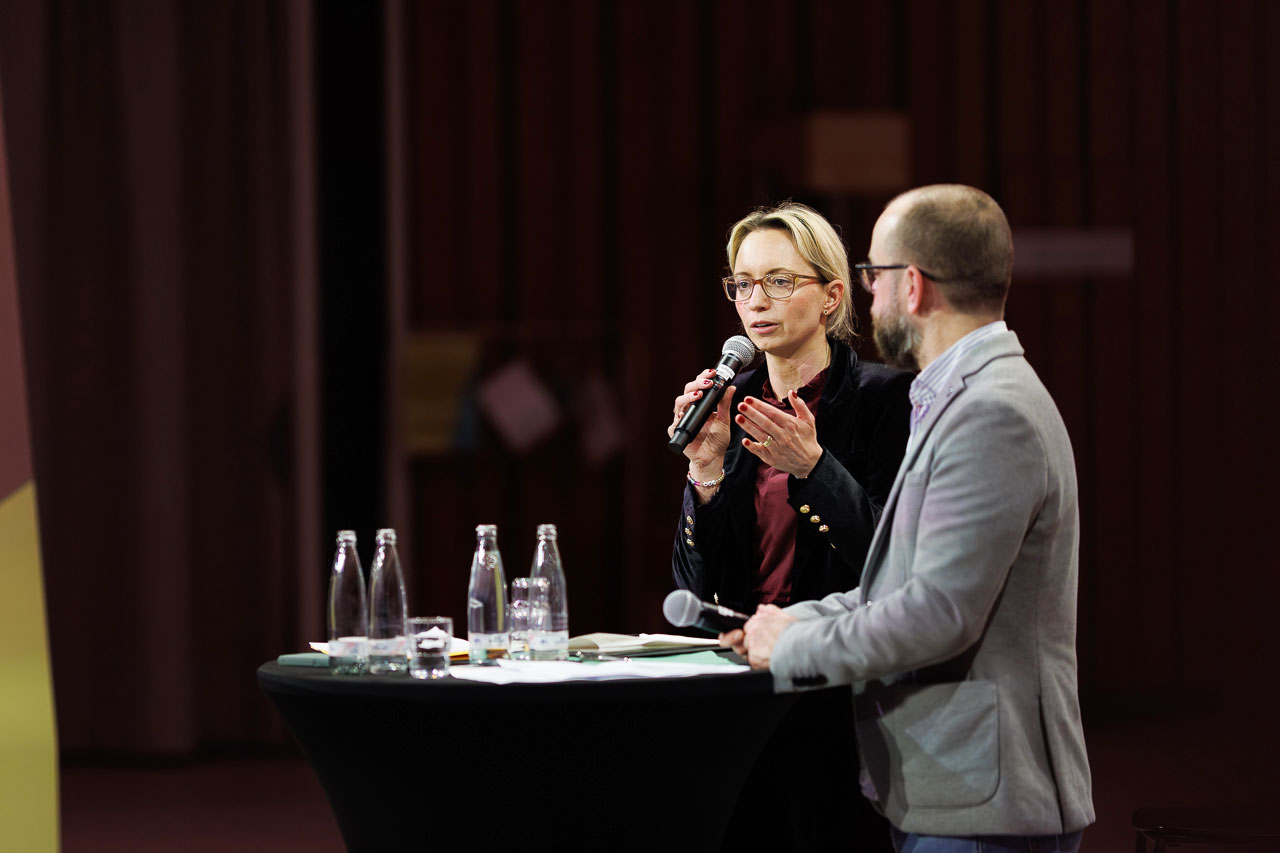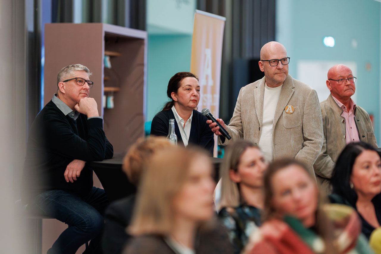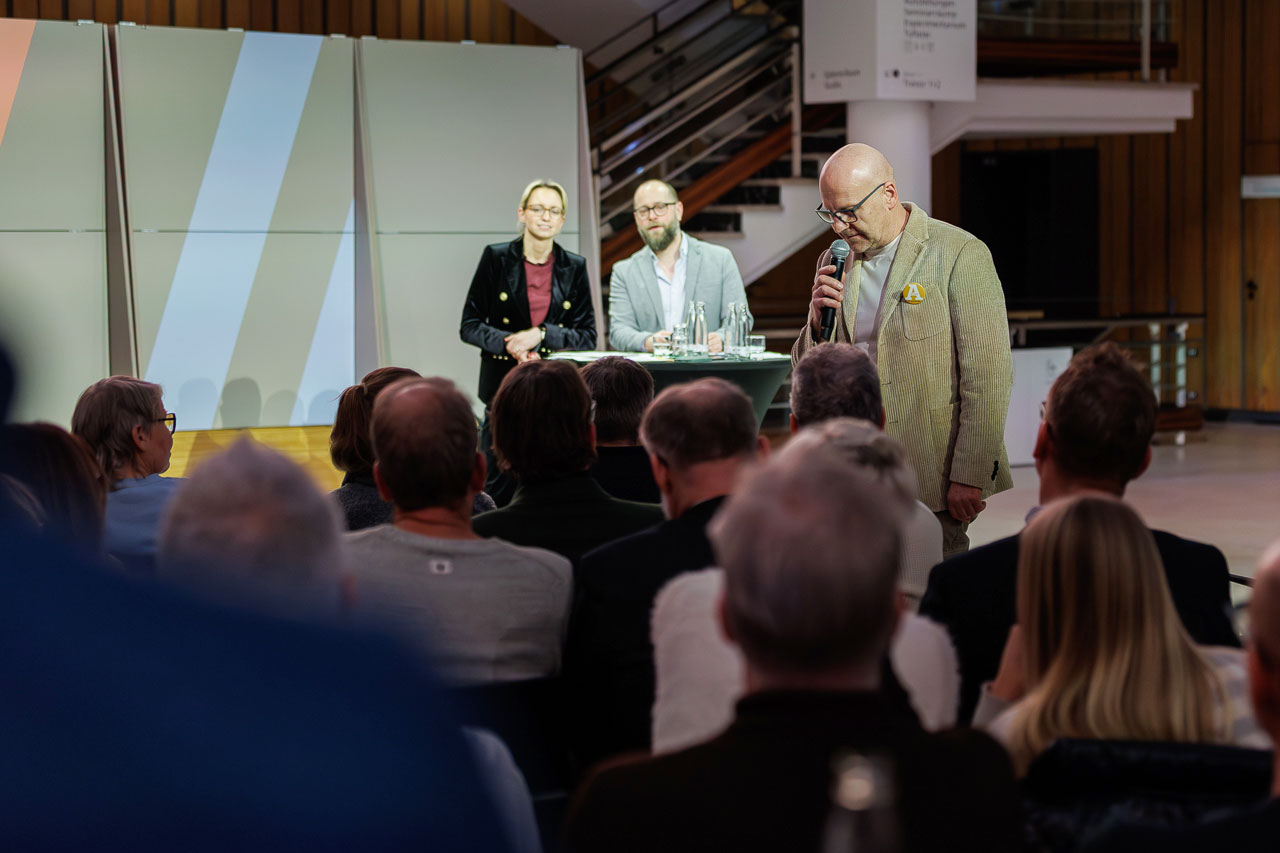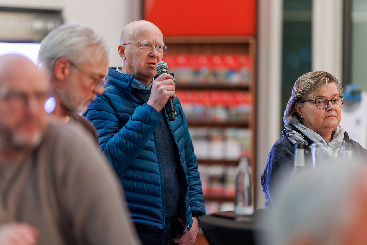 Die Knackige Stunde mit Dr. Christiana Bauer in der Bielefelder Wissenswerkstatt. Mitglieder stellen Fragen nach 100 Tagen Amtszeit.