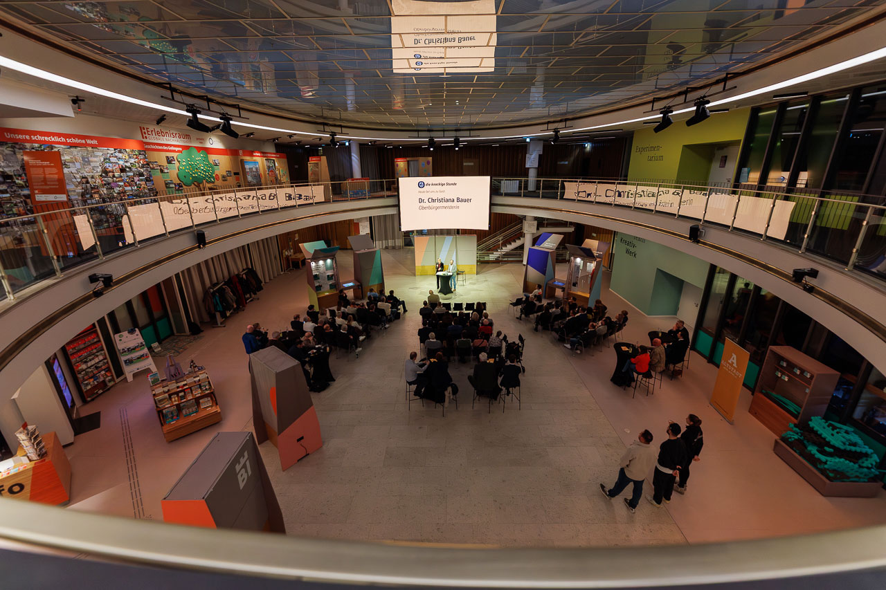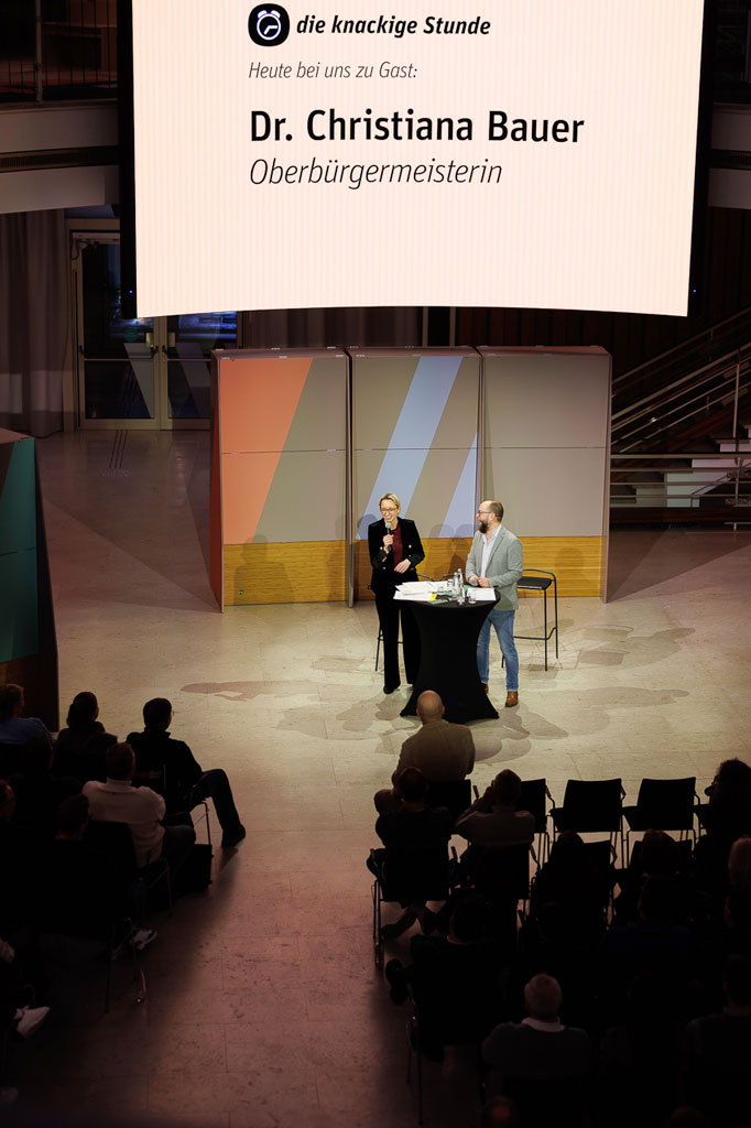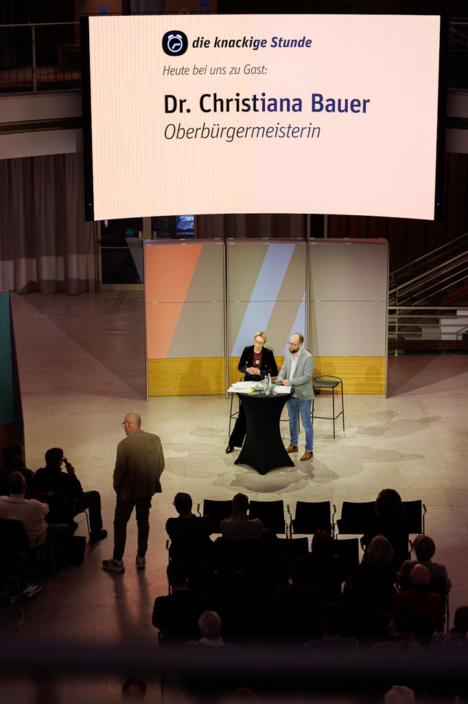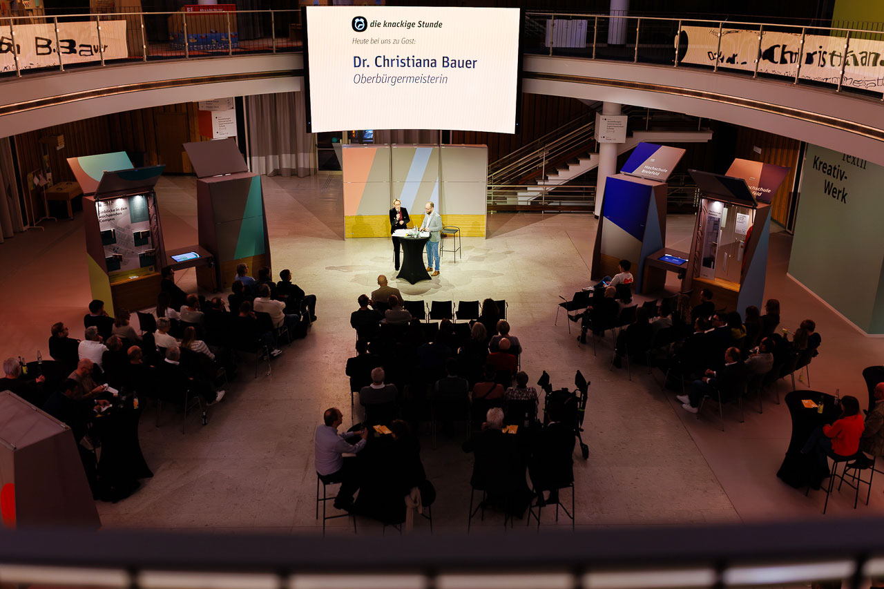 Die Knackige Stunde mit Dr. Christiana Bauer in der Bielefelder Wissenswerkstatt. Mitglieder stellen Fragen nach 100 Tagen Amtszeit.