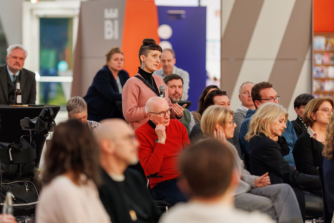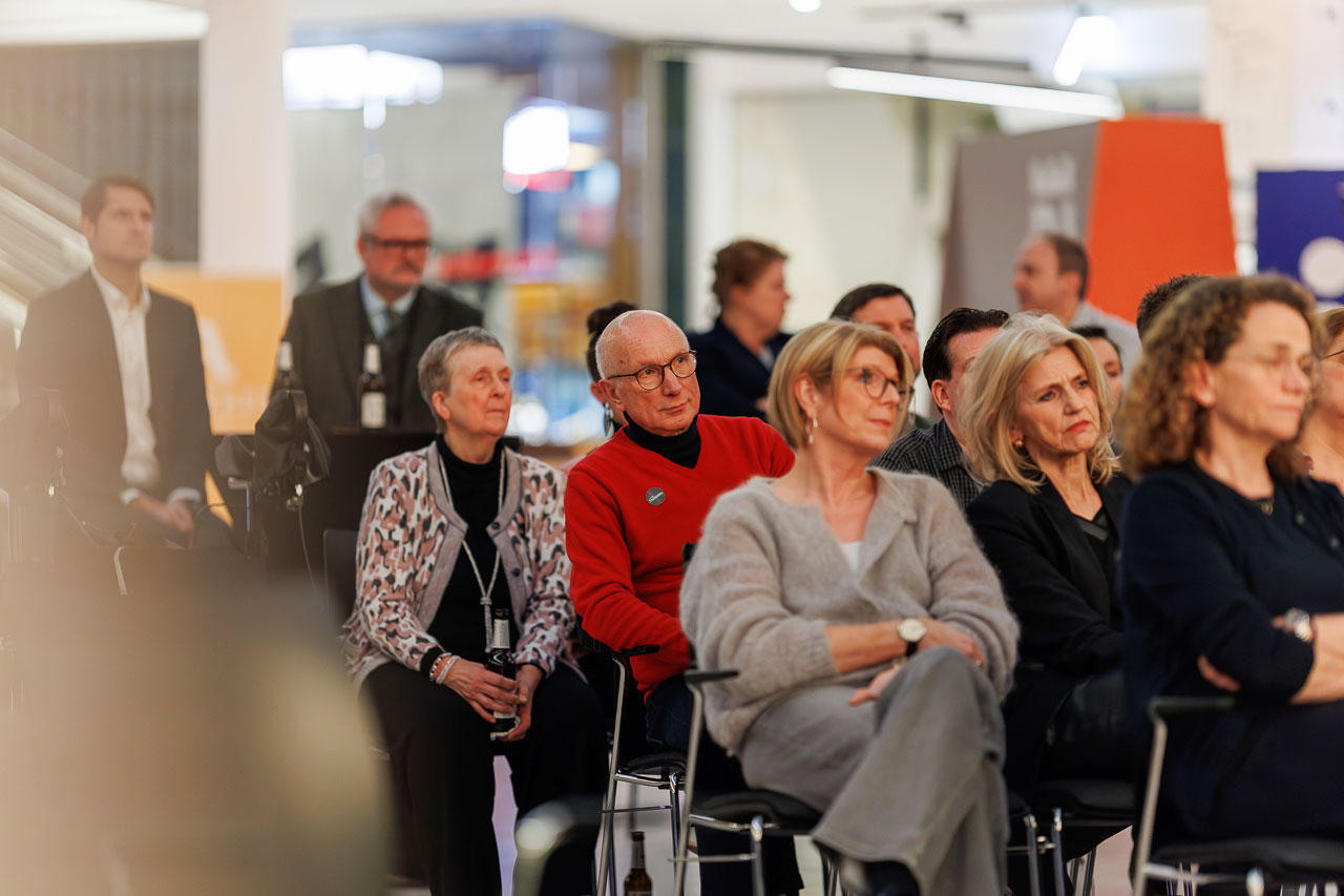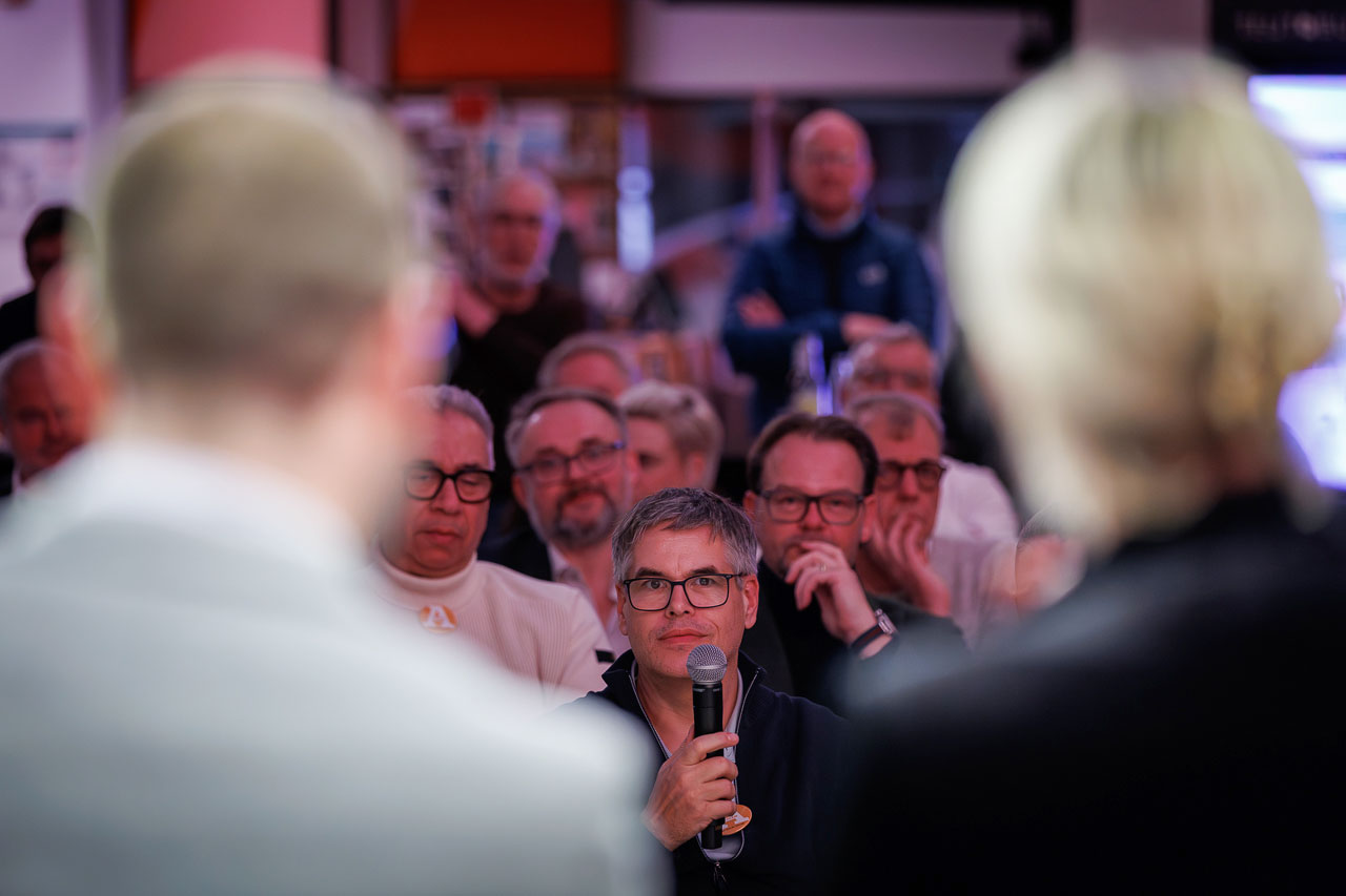 Die Knackige Stunde mit Dr. Christiana Bauer in der Bielefelder Wissenswerkstatt. Mitglieder stellen Fragen nach 100 Tagen Amtszeit.
